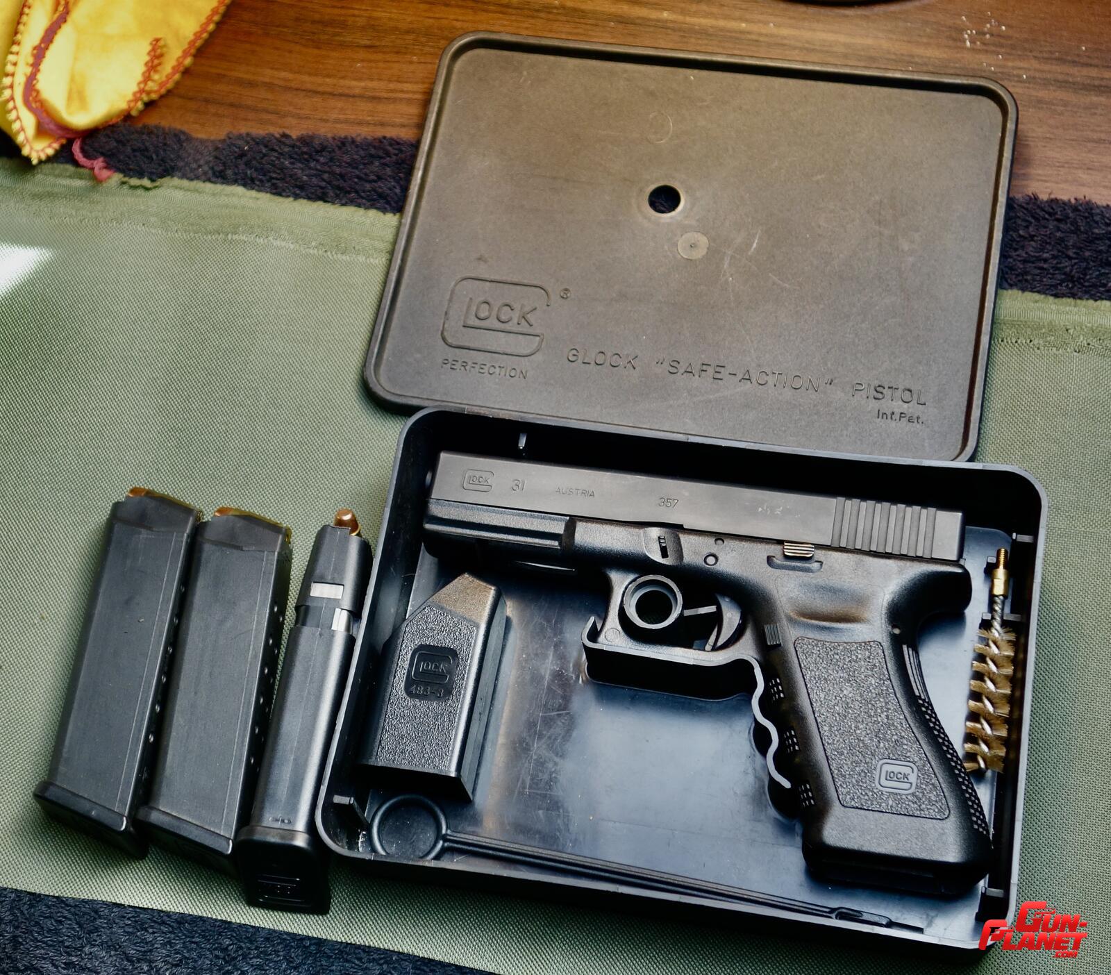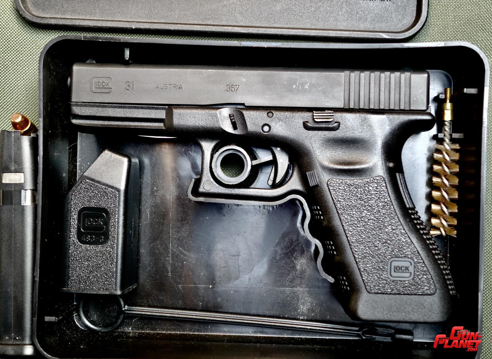 Pistola Glock modelo 31 en calibre 357 SIG, en su caja con los accesorios y 3 cargadores de 15 tiros, mas funda para portar en cadera y 200 municiones factory.