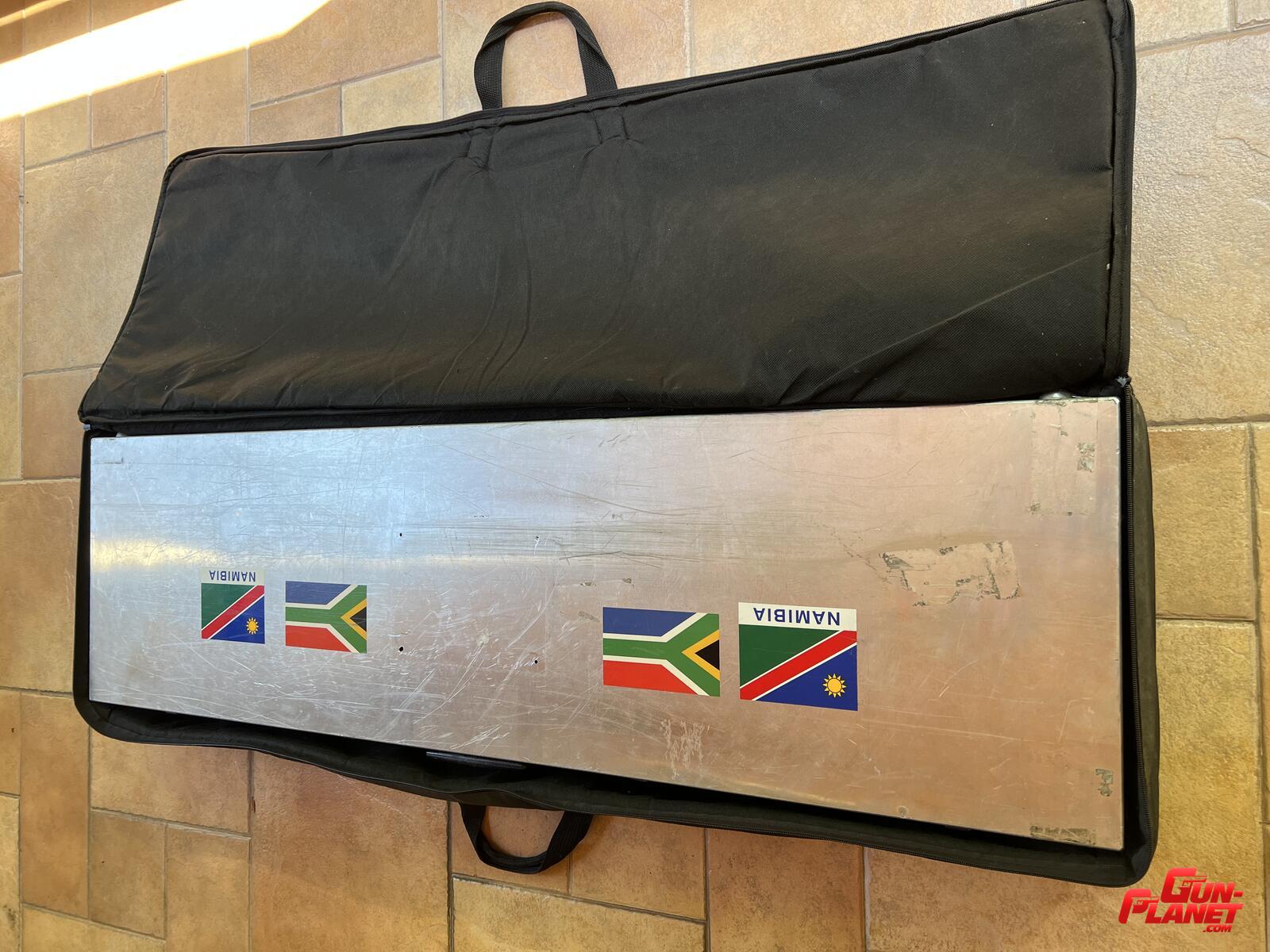 Estuche metalico usado para dos rifles de alto impacto marca ICC , origen USA , con funda protectora.