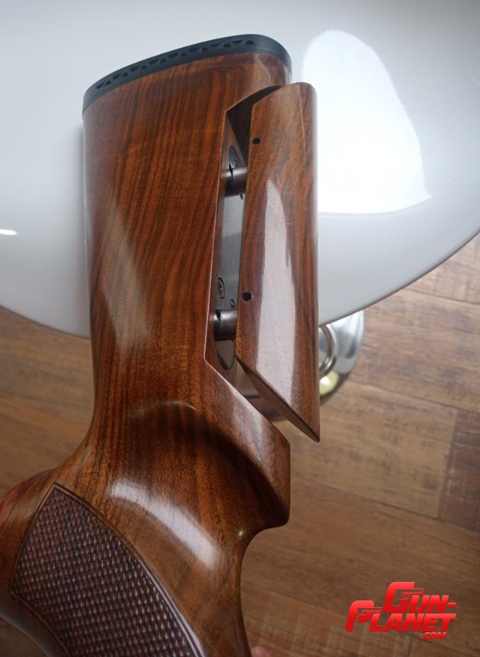 Gatillo regulable en distancia, extractores automáticos, selector de tiro, culata regulable de excelente nogal, guion LPA de fibra óptica, caños de 71cm, 1460g de peso, barrenado 18,4 en su estuche rígido con accesorios y manual.