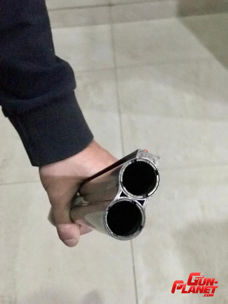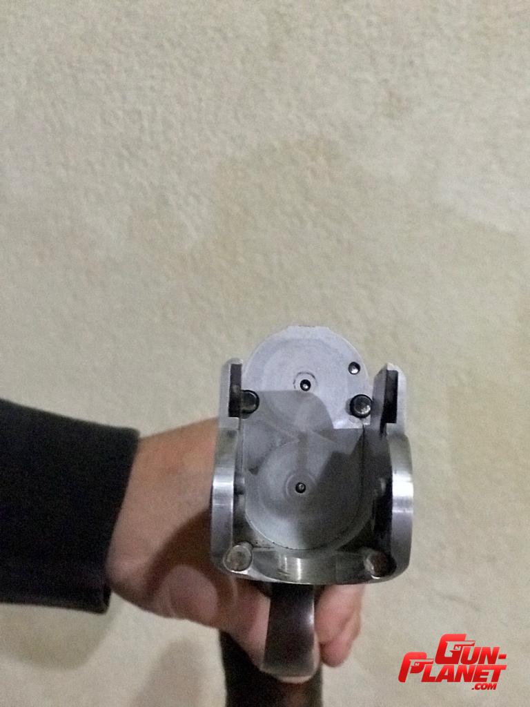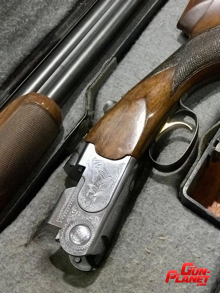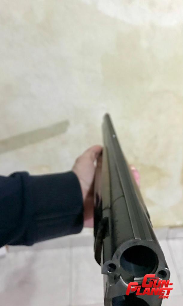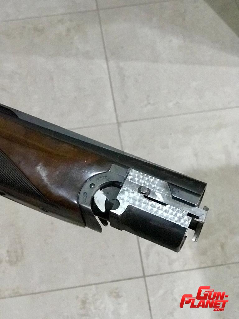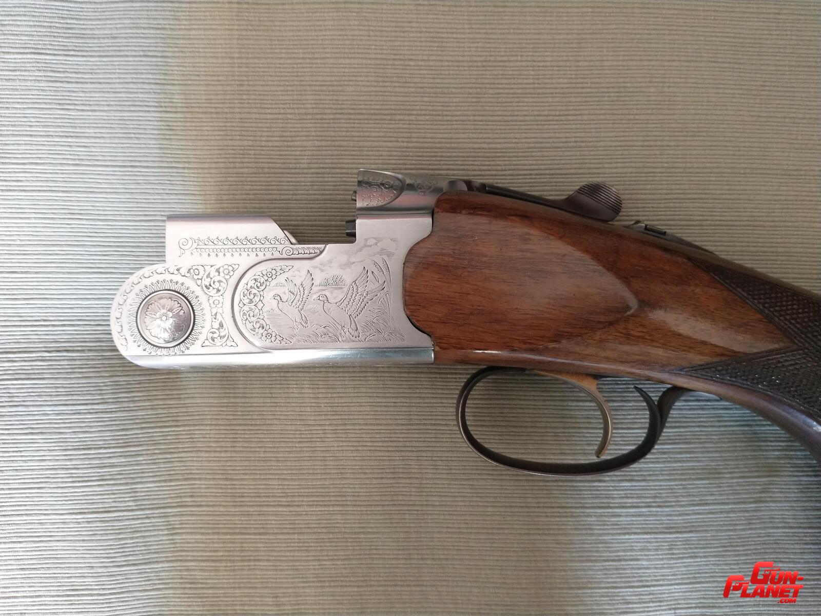 Calibre 12/76. 71 cm de caño. Banda acanalada de 71 cm. 5 choques intercambiables originales con su llave. Culata de tiro con lomo movible.