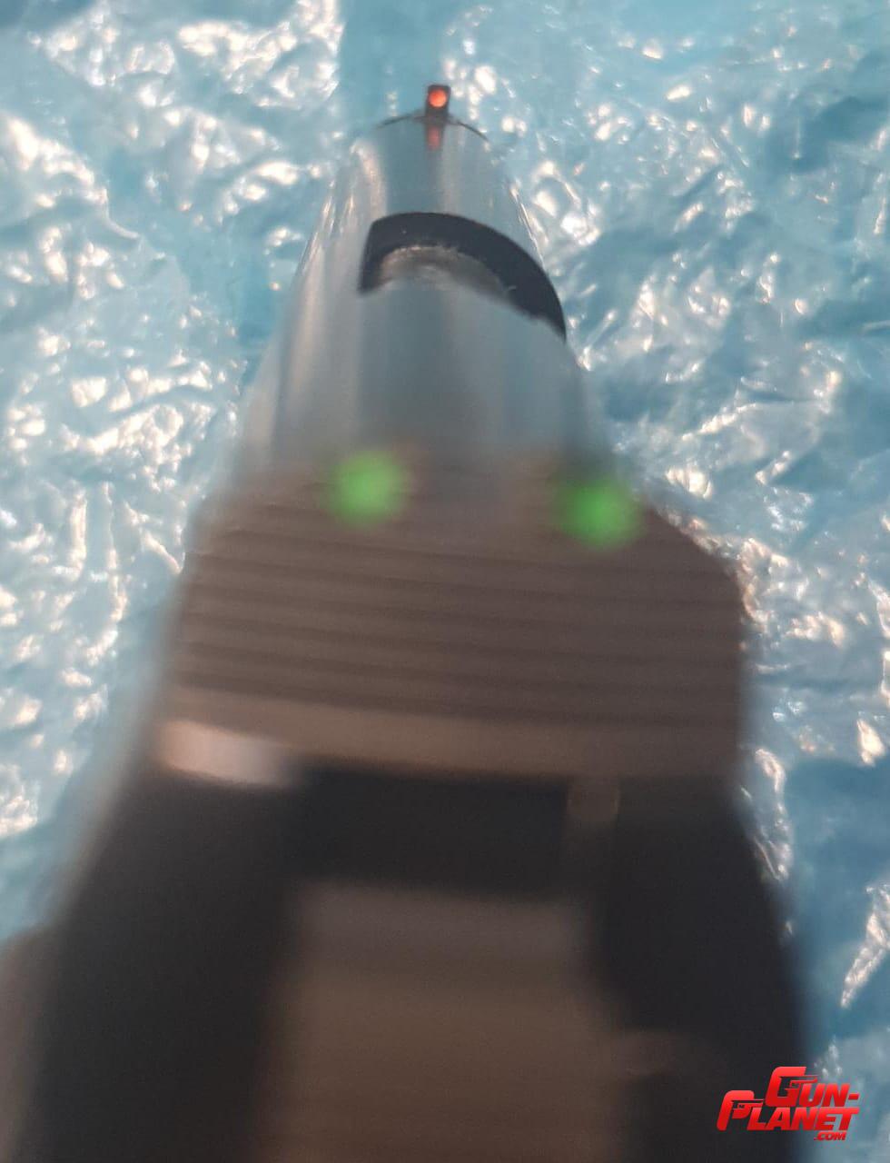 hola, te puedo consultar por que tipo de miras tiene puestas la pistola. gracias y saludos