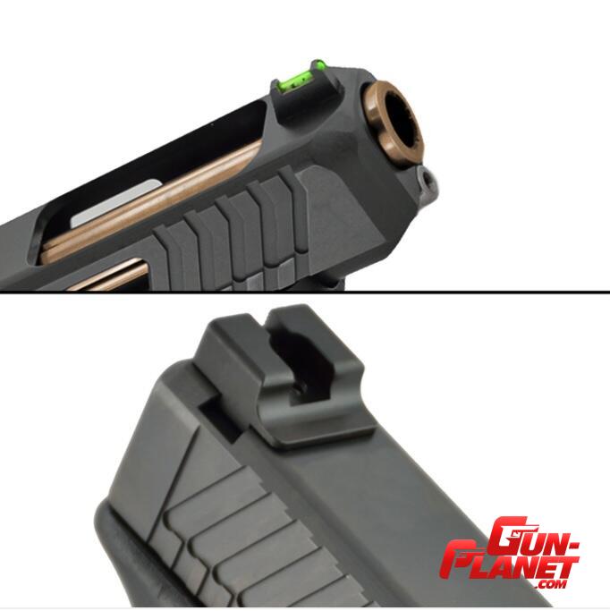 >> Hola, no sabria decirte ya que no esta listada, hasta donde se el fresado es de la misma medida en todas las glock, lo que puede cambiar es la altura de las miras de acuerdo a la distancia enter alza y guion.
