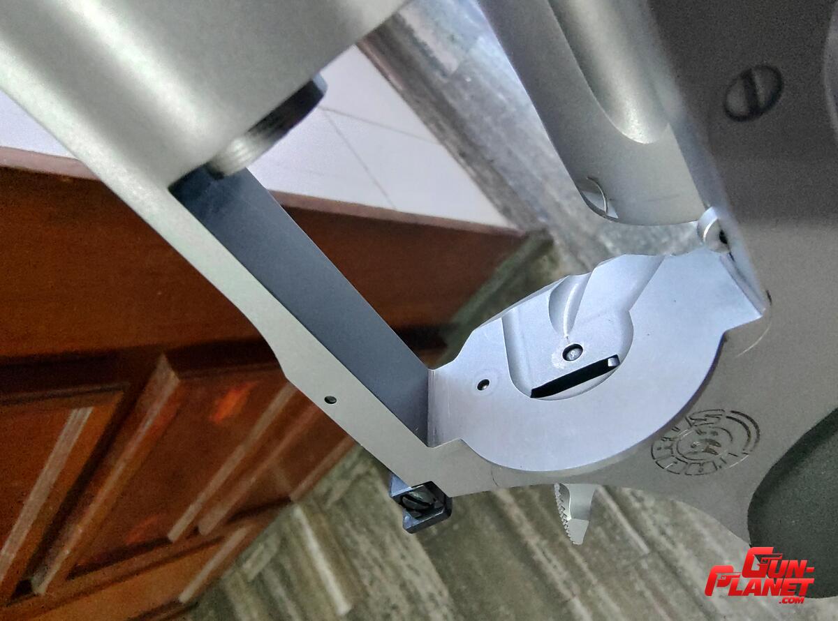 Cañón de 6.5 Pulgadas con compensador y banda ventilada. Miras regulables. Acabado acero Mate. Doble traba de cierre de tambor sobre el frame para mayor resistencia. Pensada para alta precisión: Entre el cañón compensado, las cachas amortiguadas y el cañón con contrapeso : disparar balas de 44Special es casi como disparar con una 22.