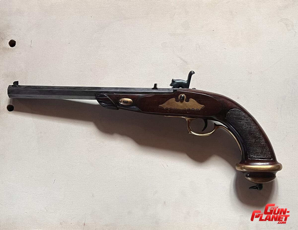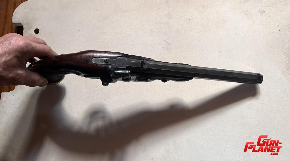 >> La fabricación es artesanal, como la fabrica Gato o Diaz Paso. El caño fue comprado para su fabricación. No posee ni inscripciones ni documentación por ser pistola avancarga. Actualmente tiro en el club Sita( Palomar) con esta pistola y otras que poseo de avancarga . Es modelo Lepage y no posee cuneos.