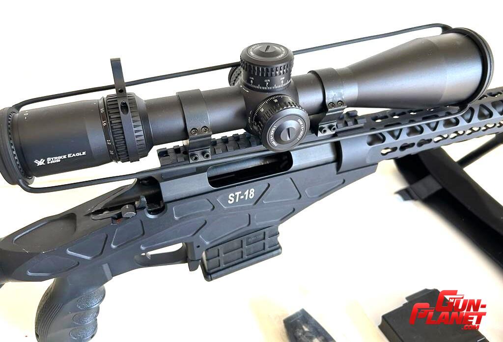 Un rifle extremadamente versátil, el Sabatti ST-18 está construido alrededor de un chasis de aleación de aluminio de alta resistencia 7075-T6 que alberga la robusta acción Blizzard, con un perno de tres trabas y un ángulo de 60 grados.