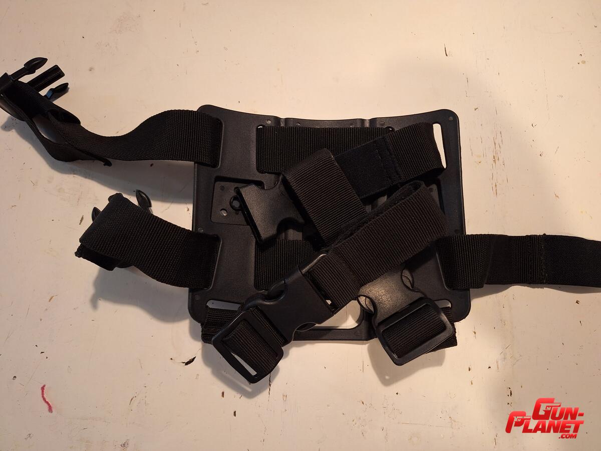 Pernera tactica regulable en ancho de pierna y largo de la cintura hacia abajo. Polimero de alto impacto y cordura de alta resistencia. Fijación universal con 1 tornillo allen que está incluido