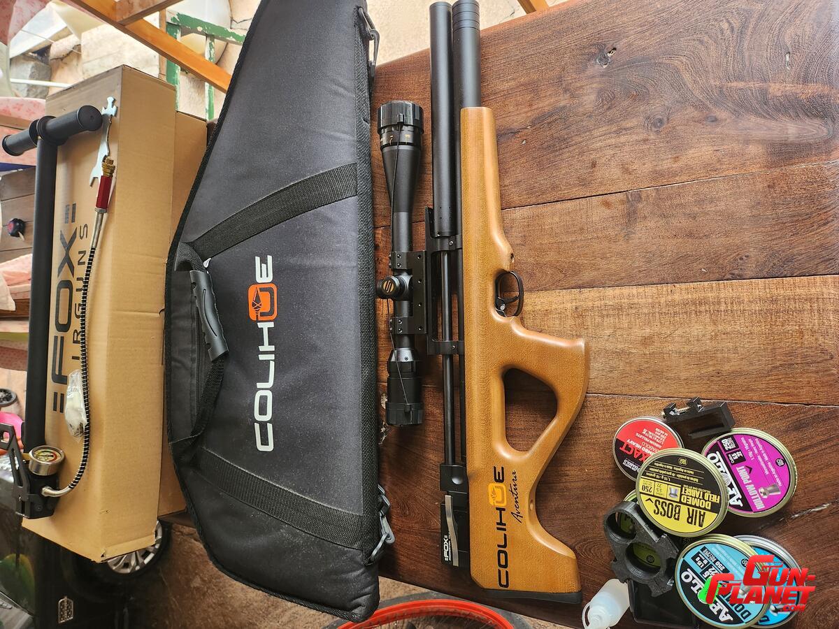Fox P15 PCP calibre 5.5, comprado en Colihue Aventura, el rifle se usó muy poco solo para hacer punteria, nunca se llevó al campo, está inmaculado no posee ni el mas minimo detalle, se tiró una lata de balines está igual a nuevo, la mira es una shilba varmint rgb con reticulo iluminado, posee las cajas de todo, de la mira del rifle y del inflador, funda acolchada latas de balines, todo lo q se ve en la foto, se vende por falta de uso. No bajo el precio.
