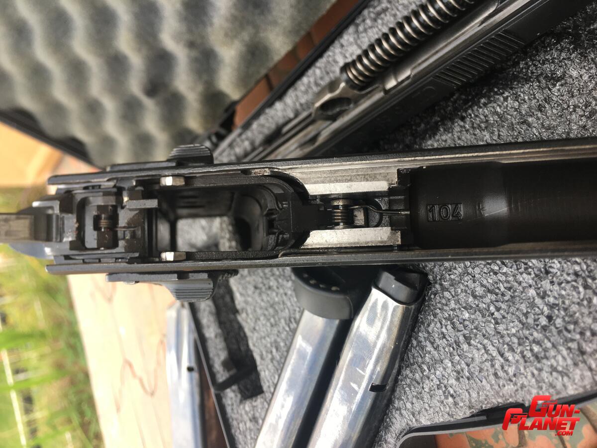 Solo le cambié el guión por uno de las mismas dimensiones pero con fibra de 1mm (es el que está instalado) el guión original se va con la pistola, junto a los 3 cargadores originales, baqueta, manual, blanco de calibración y todo lo que viene en la caja con la pistola nueva.